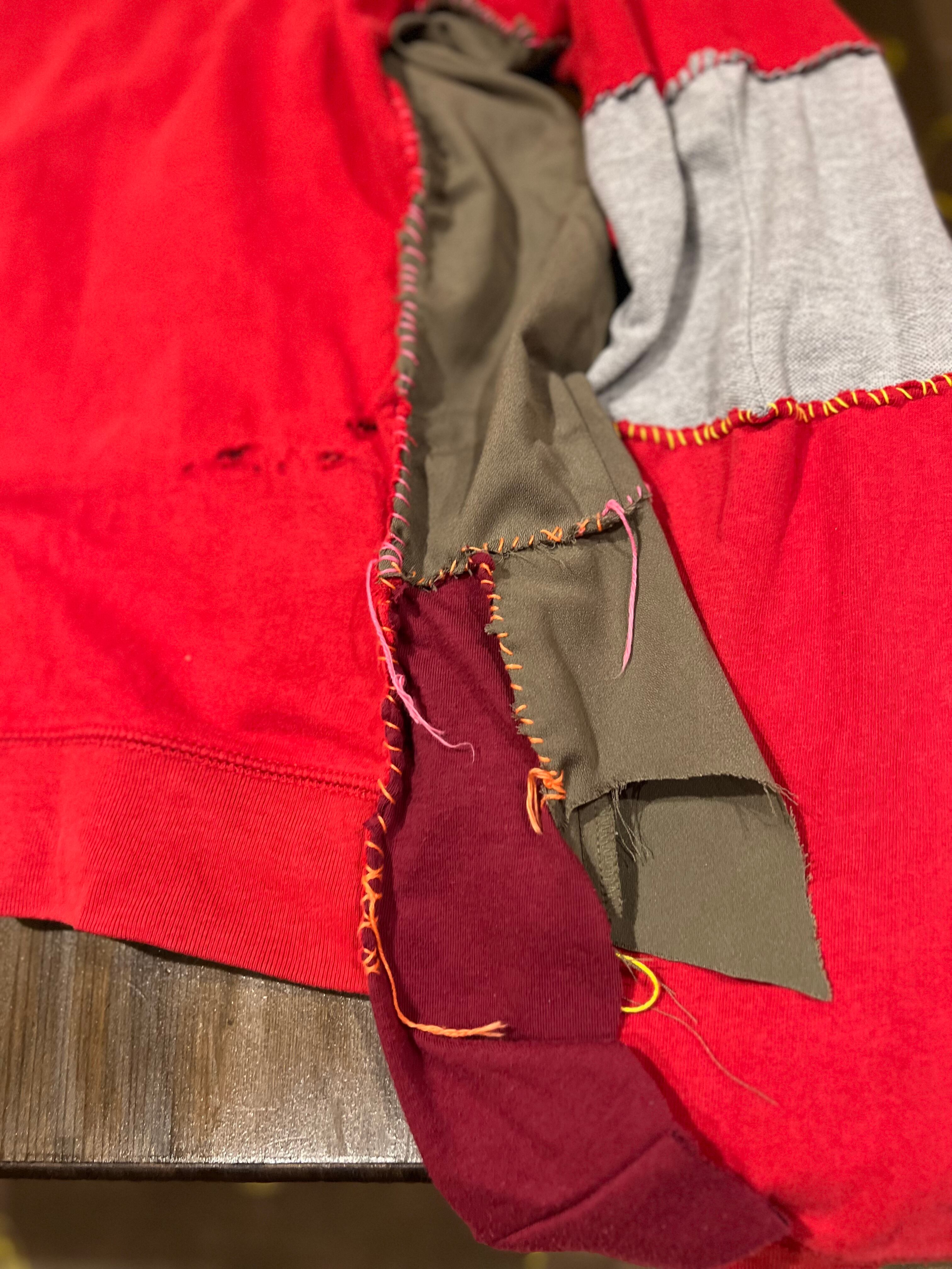様々な糸が色が他の古着の生地がドッキング!
